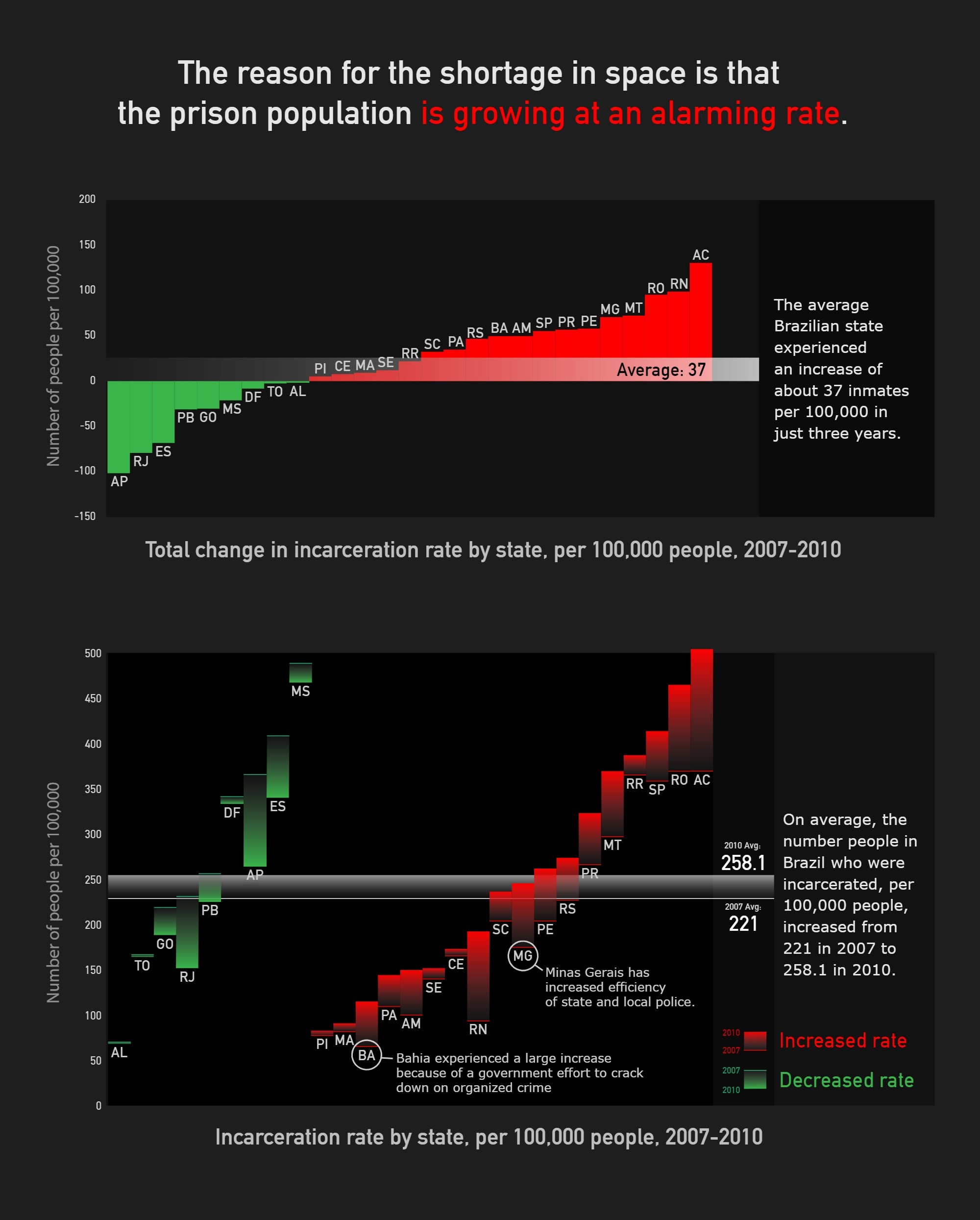 This was a piece highlights the issues with incarceration in Brazil, showing through data visualization the problems with overcrowding that prisoners experience.